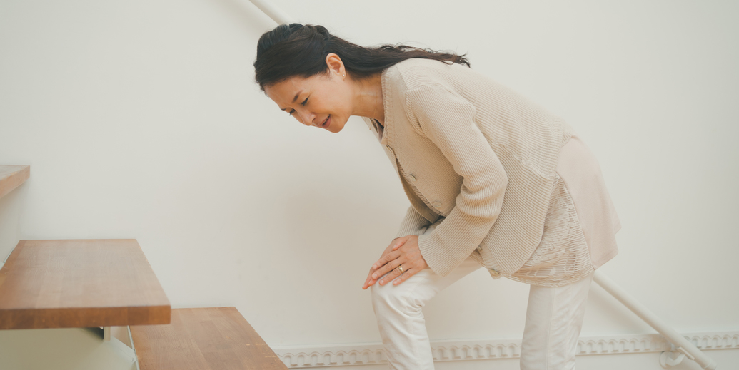 急に階段の昇り降りで痛みが出て、特に降りる事が出来ない状態でした。
