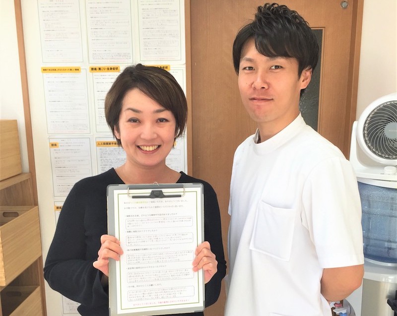 また 膝の痛みが改善されただけでなく、腰痛や肩こりも改善し体の仕組みについて驚きの連続で自分の体を見直すキッカケになりました。