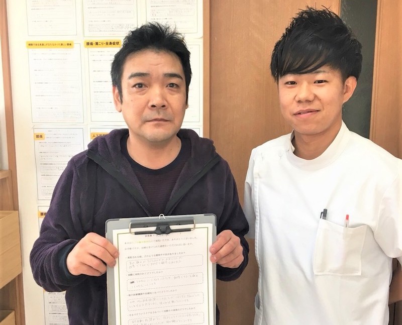自分で動画などを参考にストレッチしても改善せず、施術をお願いしました。